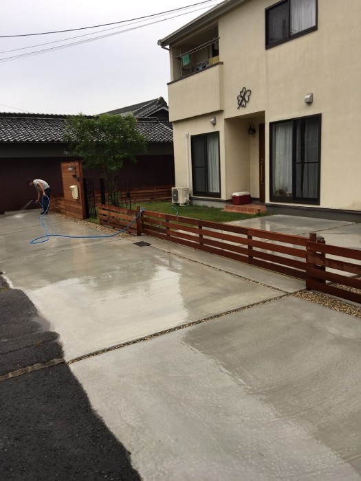 駐車場スペースはお客様のご要望通り、コンクリートを打設して、既存の芝生スペースはそのままにさせていただき、フェンスの足元やコンクリートのスリット部分には砂利を敷き、いい感じのアクセントになりました!
